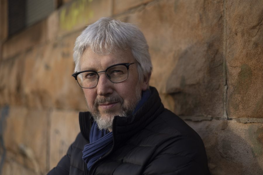 Willy Maley, at the La Pasionaria statue on Clydeside, in Glasgow, Scotland, 15 January 2025.
